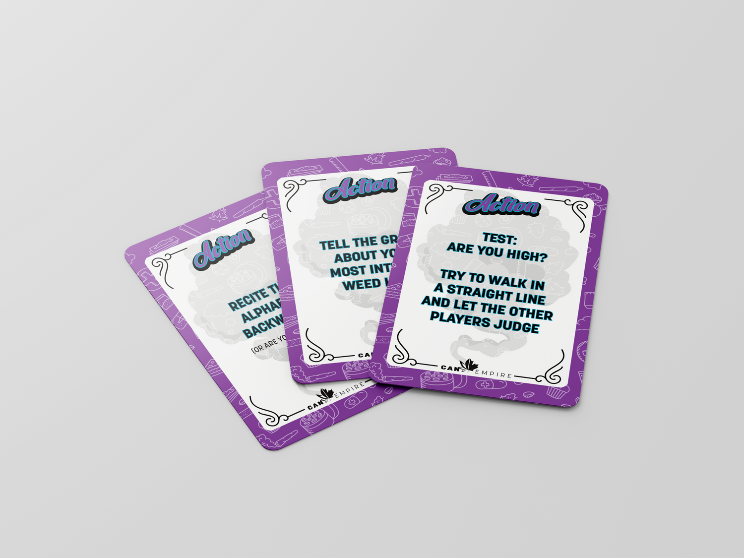 Notre jeu est 100% lié au weed! Pas de cartes ennuyeuses et aléatoires! Le tout est 420-friendly et/ou destiné à propulser votre expérience. Notre équipe est composée de véritables passionnés de cannabis, sous toutes ses formes, et vous ressentirez certainement cette immense passion à travers notre jeu. De plus, faire la fête, c'est ce que nous faisons de mieux! Combiner notre connaissance de la culture du cannabis avec un jeu de divertissement pur est ce qui rend ce projet si original.